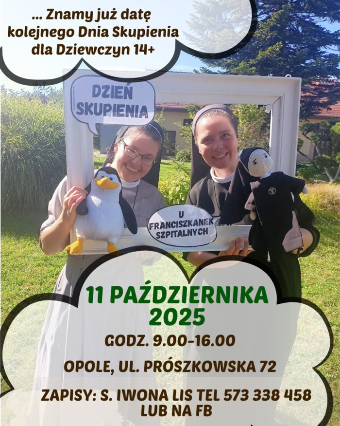 Siostry Franciszkanki Szpitalne zapraszają dziewczęta (od 14. roku życia) na dzień skupienia, który odbędzie się w sobotę 11 października w klasztorze sióstr w Opolu (ul. Prószkowska 72).