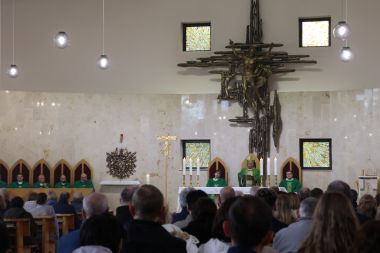 Nawiązując do miejsca sprawowania liturgii, biskup przypomniał, że jubileusz to czas wdzięczności i refleksji nad wartościami, które nie przemijają. „Zwyczaj obchodzenia jubileuszy jest wyrazem głębokiego przekonania, że choć życie przemija, możemy w nim realizować wartości wieczne: miłość, wierność, wiarę i dobro” – powiedział. „Obchodząc jubileusz, dajemy wyraz radości, że w naszym życiu spełniło się coś głęboko sensownego, co jest ponad prawem przemijania” – dodał.