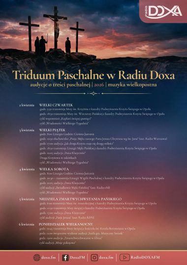 W Wielki Czwartek usłyszymy cykl "Kapłani świętej pamięci", w Wielki Piątek rozważania Drogi Krzyżowej, w Wielką Sobotę audycję "Świadkowie Męki Pański", a w Wielkanoc program "Pasja Jezusa". Nie zabraknie także Ciemnych Jutrzni i nastrojowej muzyki.