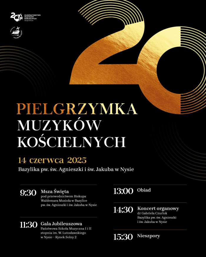 Centralne obchody jubileuszu 20-lecia Diecezjalnego Duszpasterstwa Muzyków Kościelnych odbędą się w sobotę, 14 czerwca, w Nysie, w formie pielgrzymki do bazyliki pw. św. Agnieszki i św. Jakuba.