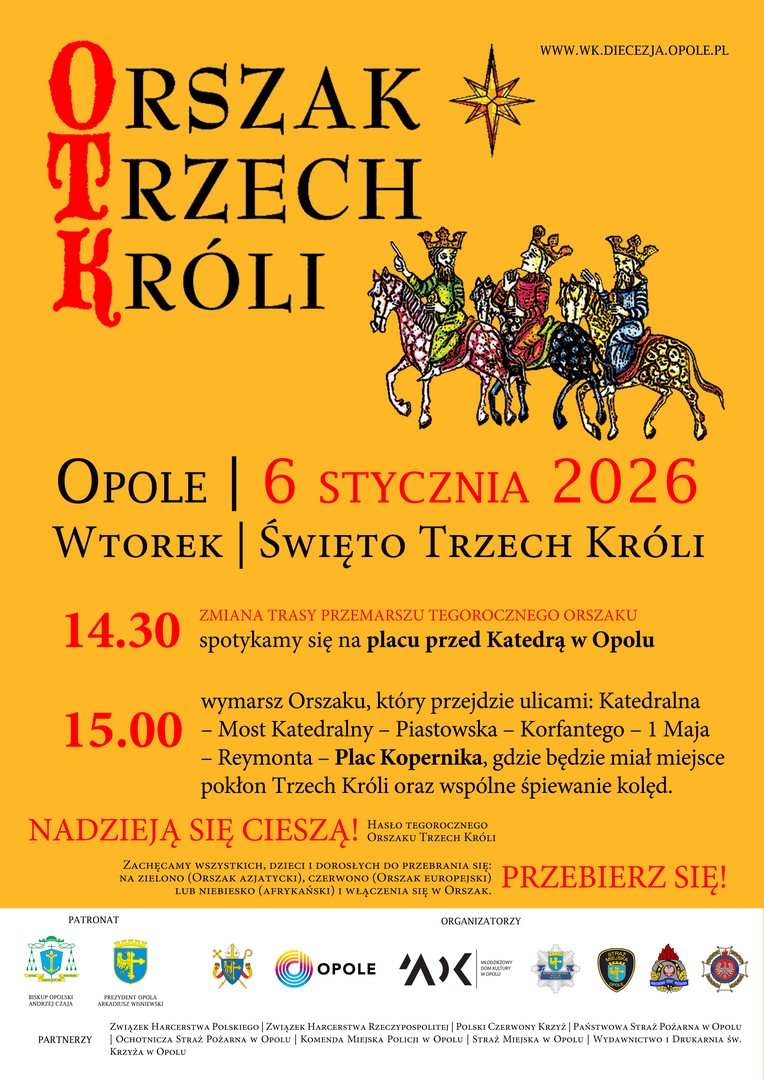 Wydział Katechetyczny Kurii Diecezji Opolskiej zaprasza do udziału w Orszaku Trzech Króli, który przemaszeruje ulicami Opola we wtorek 6 stycznia. W tym roku dary poniosą członkowie Bractwa Świętego Józefa.