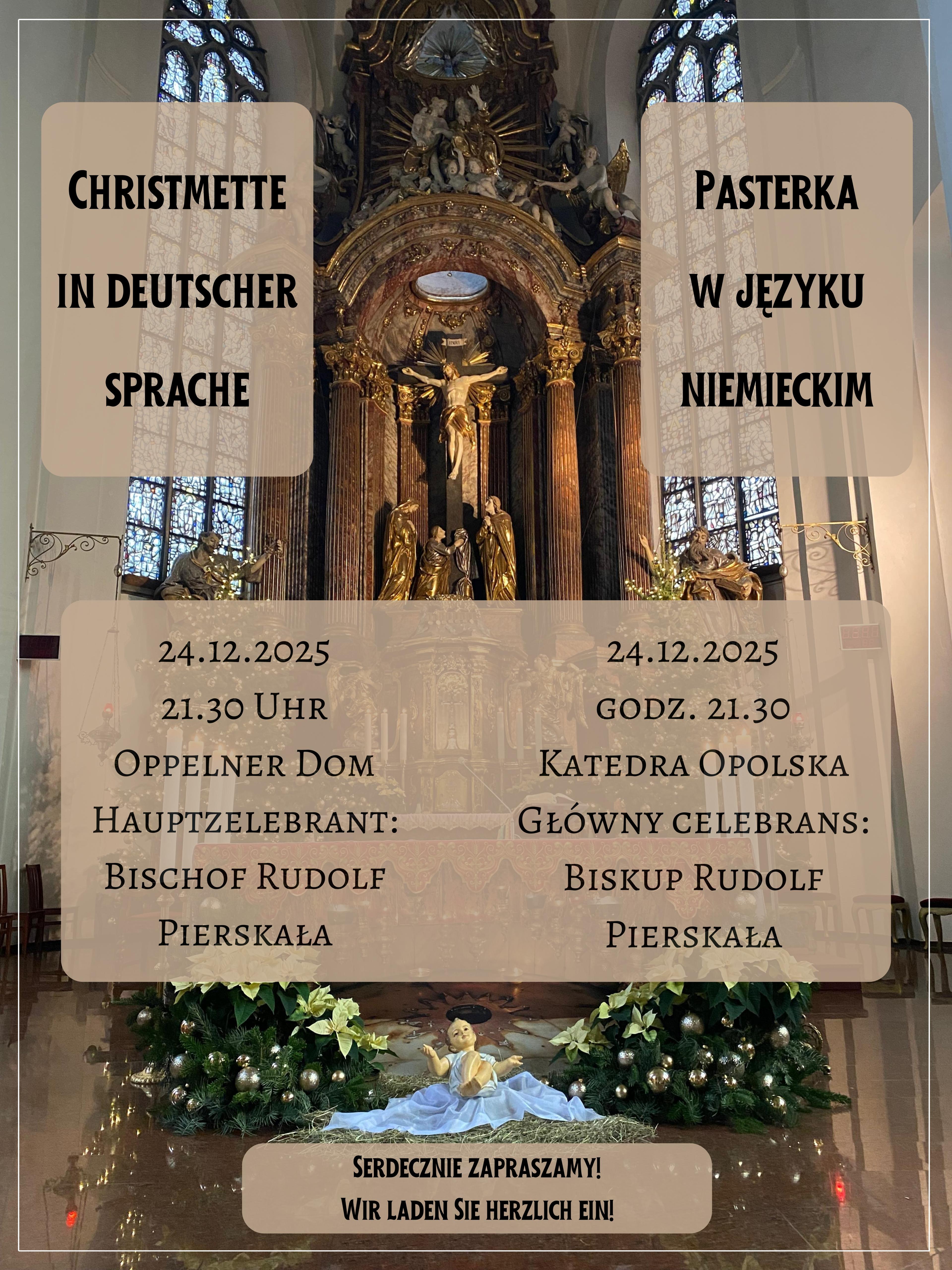 W środę, 24 grudnia, o godz. 21.30, w katedrze opolskiej będzie sprawowana Msza św. pasterska w języku niemieckim. Eucharystii będzie przewodniczył bp Rudolf Pierskała.