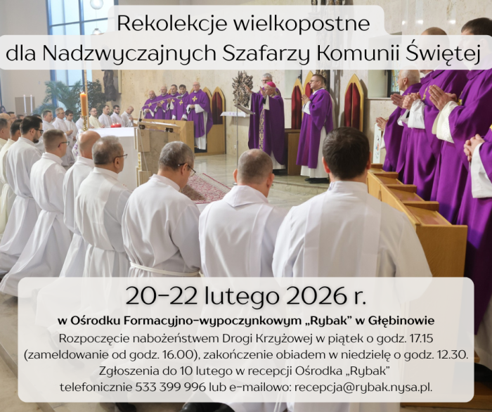 Doroczne rekolekcje dla Nadzwyczajnych Szafarzy Komunii Świętej odbędą się w dniach 20-22 lutego w Ośrodku Formacyjno-Wypoczynkowym „Rybak” w Głębinowie.
