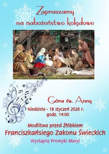 Podczas kolędowania wystąpią dzieci ze Specjalnego Ośrodka Szkolno-Wychowawczego w  Prudniku. Po kolędowaniu organizatorzy zapraszają na kawę, herbatę franciszkańską i ciasto przy ognisku.