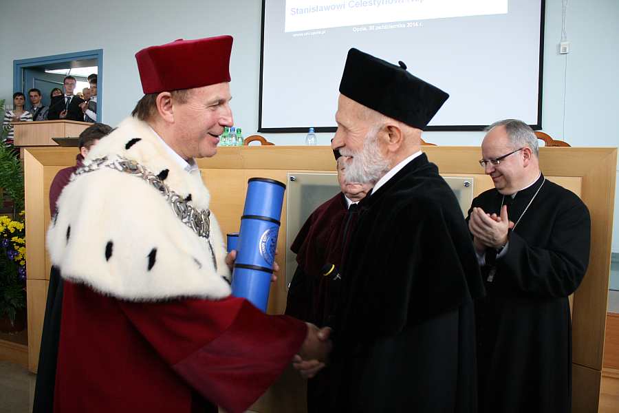 Do grona laureatów tytułu doktora honoris causa Uniwersytetu Opolskiego dołączyło dwóch wybitnych teologów i ekumenistów: o. prof. Wacław Hryniewicz oraz o. prof. Stanisław Celestyn Napiórkowski. Obydwaj są profesorami Katolickiego Uniwersytetu Lubelskiego. Uroczystość odbyła się 30 października 2014 r. w auli Błękitnej Uniwersytetu Opolskiego.