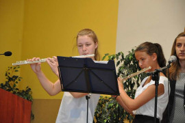 Następnie w Domu Pielgrzyma miała miejsce część artystyczna przygotowana przez uczniów z Zespołu Szkół w Racławicach Śląskich. Na zakończenie Publiczna Szkoła Podstawowa w Osowcu – najmłodsza szkoła Jana Pawła II w naszej diecezji – zaprezentowała swój sztandar.