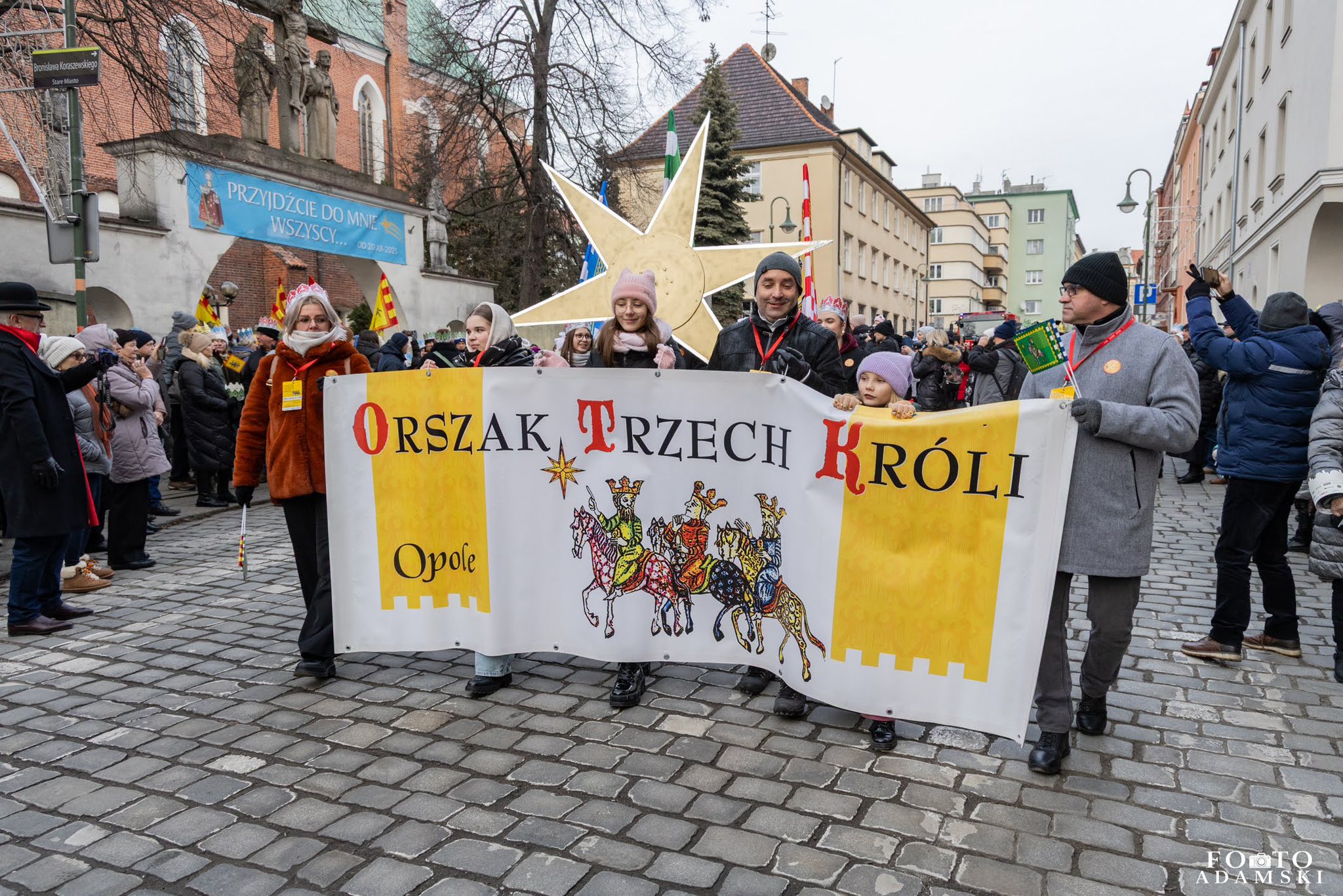 Opolskie rodziny z banerem oraz gwiazda poprowadziły uczestników orszaku. Za nimi aniołowie z flagami, zapowiadający radosną nowinę o narodzeniu Zbawiciela. W tym roku szczególne miejsce zajmowało Bractwo św. Józefa, którego przedstawiciele zanieśli dary Trzech Króli – złoto, kadzidło i mirrę. Maryi i Józefem towarzyszył osiołek, przywołując obraz betlejemskiej drogi. W role Trzech Króli wcielili się: Tobiasz Stankiewicz jako król europejski Kacper, Mirosław Jaworowski jako król azjatycki Melchior oraz ks. Romuald Mozou jako król afrykański Baltazar, którzy – zgodnie z tradycją – jechali konno. Za Królami pochód tworzyły barwne orszaki kontynentalne przygotowane przez dzieci i młodzież z opolskich szkół i przedszkoli wraz z rodzicami, katechetami i nauczycielami. W orszaku udział wzięli przedstawiciele Kościoła i władz samorządowych: biskup Rudolf Pierskała, prezydent miasta Opola Arkadiusz Wiśniewski, wiceprezydent Łukasz Sowada, przedstawiciele Urzędu Miasta Opola – zwłaszcza Wydziału Kultury, Turystyki i Współpracy Zagranicznej – oraz przedstawiciele Młodzieżowego Domu Kultury w Opolu z dyrektor Elżbietą Marciniszyn na czele. Całości przemarszu towarzyszyła Orkiestra Dęta z Górażdży, a za nią podążali licznie zebrani uczestnicy Orszaku. Przemarsz zabezpieczali funkcjonariusze Policji, Straży Pożarnej, Straży Miejskiej oraz harcerze, wspierający organizację i porządek wydarzenia.