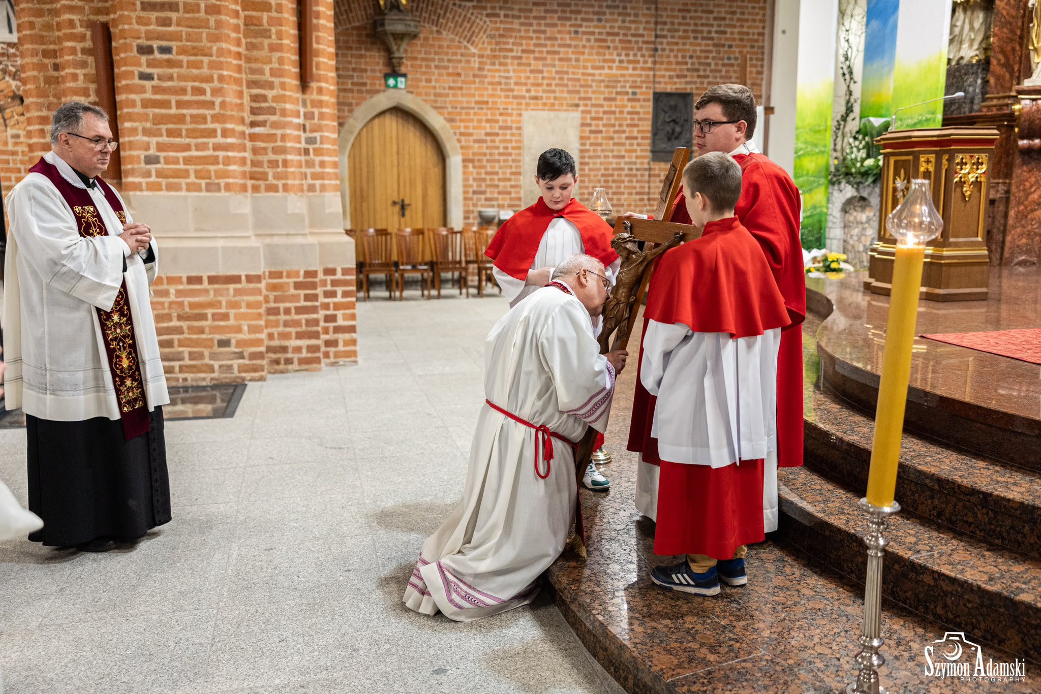 Biskup przypomniał, że Jezus swoje ukrzyżowanie nazywa godziną chwały, czyli wywyższeniem ponad ziemię, aby wszystkich przyciągnąć do siebie. Odwołując się do słów Chrystusa: „Ojcze, nadeszła godzina, aby został otoczony chwałą Syn Człowieczy. A Ja, gdy zostanę nad ziemię wywyższony, przyciągnę wszystkich do siebie”, podkreślił, że udział w liturgii Męki Pańskiej jest uobecnieniem tu i teraz cierpienia Jezusa i Jego zbawczej ofiary.