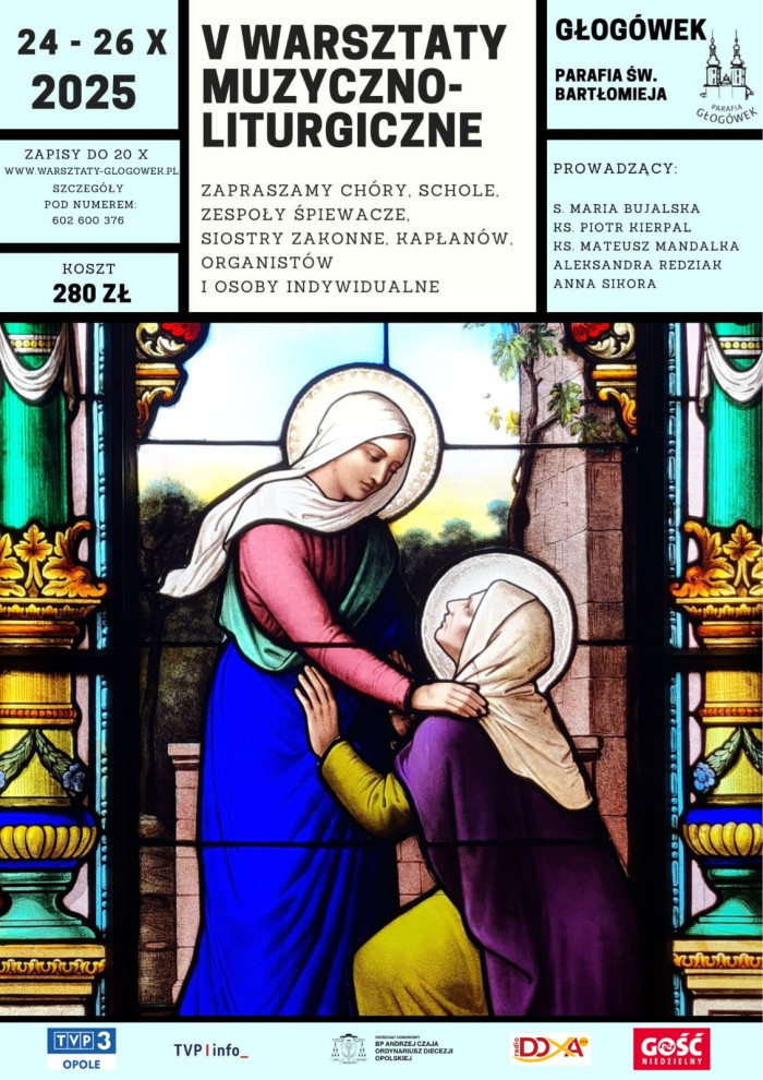 Diecezjalne Duszpasterstwo Muzyków Kościelnych Diecezji Opolskiej zaprasza wszystkich chórzystów, kantorów, śpiewaków, organistów, kapłanów, siostry zakonne i osoby indywidualne do udziału w V edycji warsztatów muzyczno-liturgicznych, które odbędą się w dniach 24-26 października w parafii św. Bartłomieja w Głogówku.