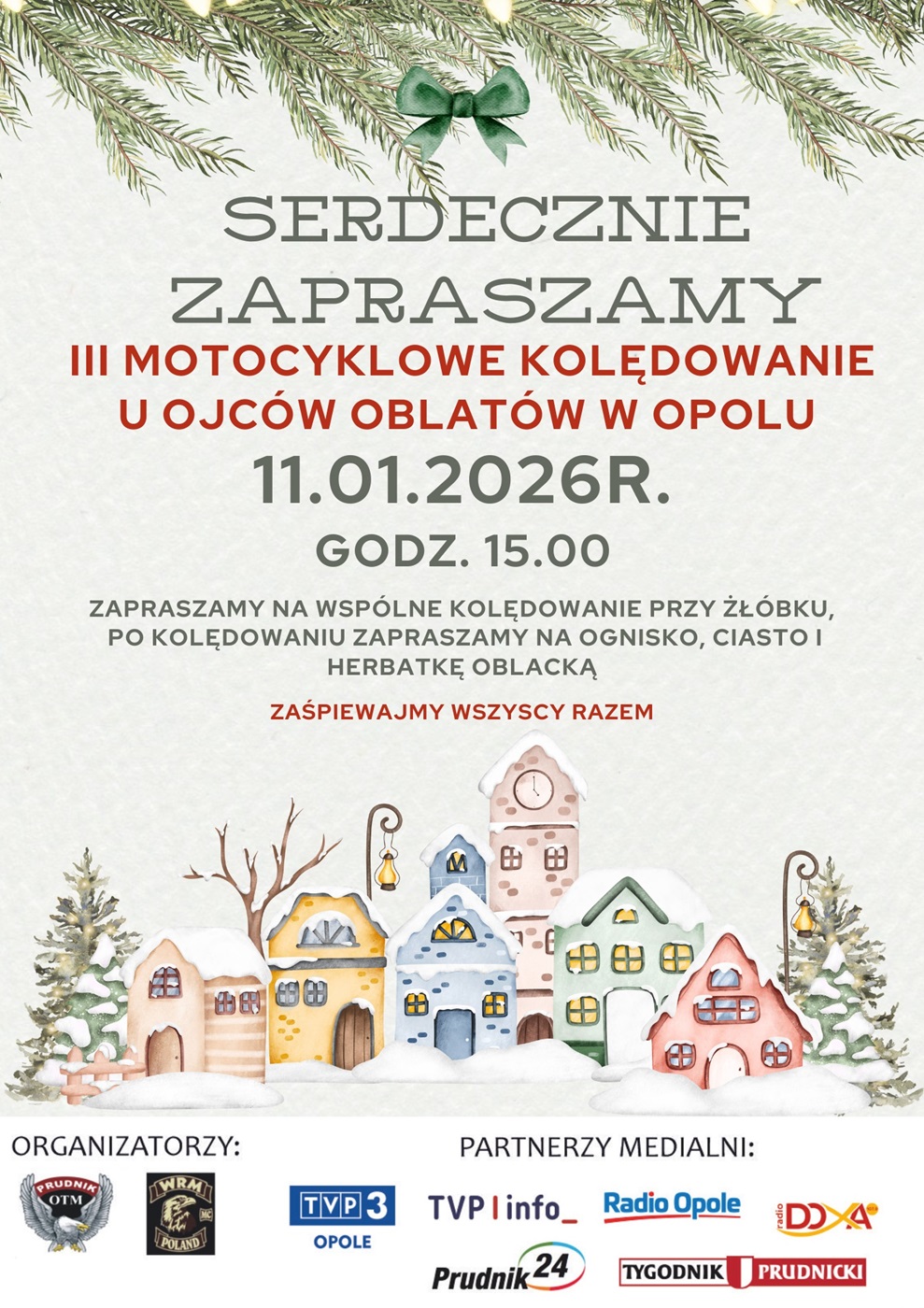 Opolscy motocykliści bardzo serdecznie zapraszają na wspólne kolędowanie u Ojców Oblatów, które odbędzie się w niedzielę 11 stycznia o godz. 15.00 w tymczasowej kaplicy przy budującym się kościele pw. św. Jana Pawła II w Opolu.