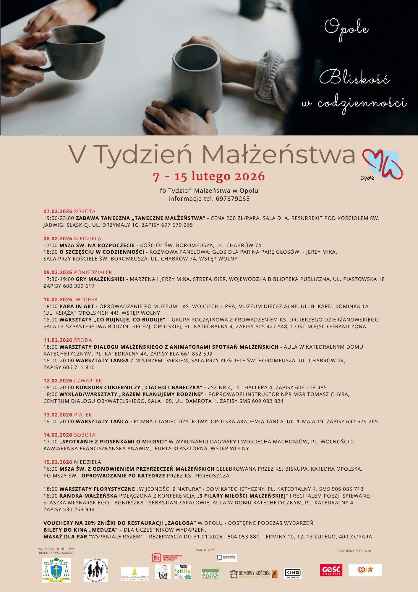 W dniach 7-15 lutego w Opolu odbędzie się V Tydzień Małżeństwa pod hasłem „Bliskość w codzienności”.