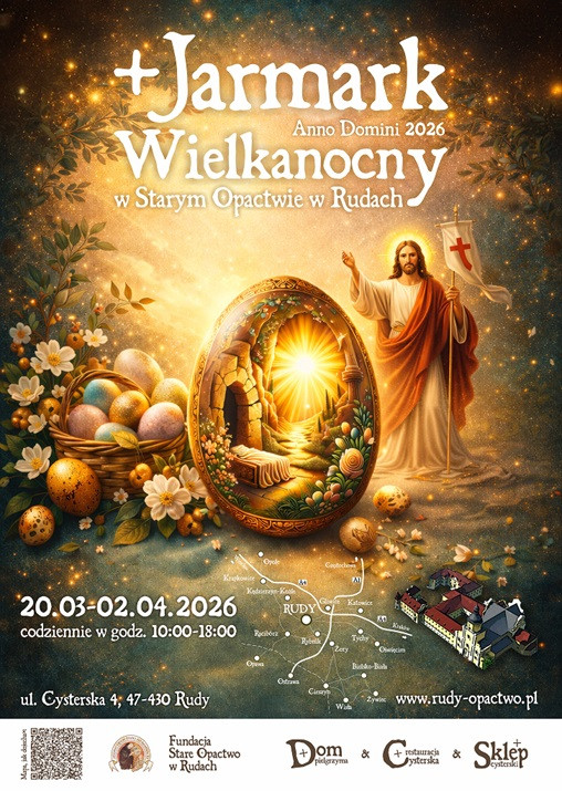 Ks. Robert Urbańczyk, prezes Zarządu Fundacji „Stare Opactwo w Rudach”, zaprasza na Jarmark Wielkanocny w Starym Opactwie, który odbędzie się w dniach 20 marca - 2 kwietnia, w godz. 10.00-18.00.