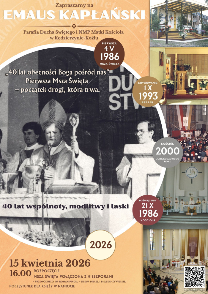 Biskup opolski Andrzej Czaja serdecznie zaprasza wszystkich kapłanów diecezjalnych i zakonnych do udziału w Kapłańskim Emaus, które odbędzie się w środę 15 kwietnia w parafii Ducha Świętego i NMP Matki Kościoła w Kędzierzynie-Koźlu (Piasty).